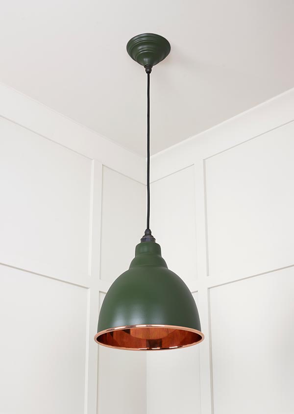 Our Brindley pendants are as eye-catching as they are versatile. Can be hung at various different levels to brighten up a space, and looks fantastic when paired with matching pendants. All our pendants are made to order with a three to four week lead time. Our light fittings are dimmable when fitted with a compatible dimmable LED bulb. Supplied fully wired with matching ceiling rose and all necessary fixings. 1m of black fabric cable provided as standard. Bulb: LED Only – 6W Maximum (purchased separately) Our pendants are available in a wide range of colours and finishes. We also offer a bespoke colour service – please contact us for further information. Our Smooth Copper pendants are spun from solid copper. This finish produces a subtle, warm light that is best balanced by using a cooler/brighter bulb type.