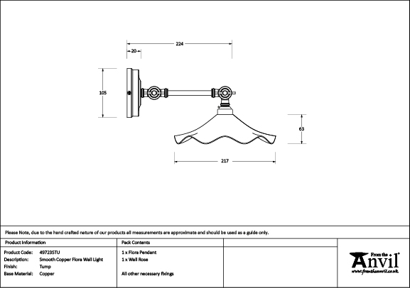 Smooth Copper Flora Wall Light in Tump | 49723STU