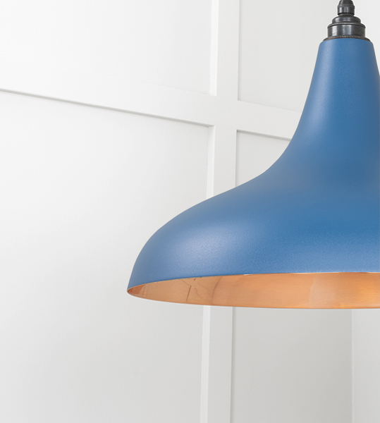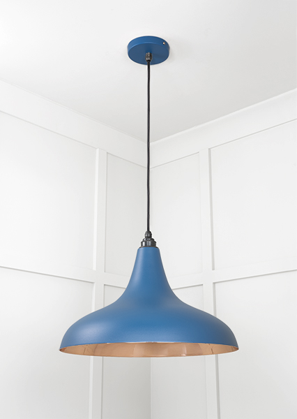 With their sleek, contemporary design, our Frankley pendants are incredibly versatile, creating an eye-catching statement in any interior. Hang individually or in a group to completely transform your space. All our pendants are made to order with a three to four week lead time. Our light fittings are dimmable when fitted with a compatible dimmable LED bulb. Bulb: LED Only – 6W Maximum (purchased separately) Supplied fully wired with matching ceiling rose and all necessary fixings. 1m of black fabric cable provided as standard. Our pendants are available in a wide range of colours and finishes. We also offer a bespoke colour service – please contact us for further information. Our Smooth Copper lights are spun from solid copper. This finish produces a subtle, warm light that is best balanced by using a cooler/brighter bulb type.