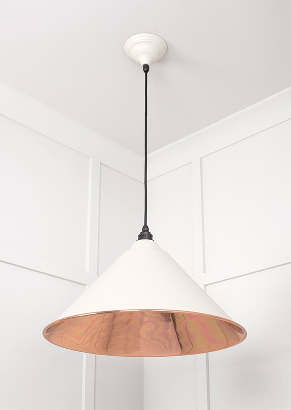 Our Hockley pendants have a sleek silhouette that brings drama to any space. They look fantastic individually, or can be combined to create further interest. All our pendants are made to order with a three to four week lead time. Our light fittings are dimmable when fitted with a compatible dimmable LED bulb. Supplied fully wired with matching ceiling rose and all necessary fixings. 1m of black fabric cable provided as standard. Bulb: LED Only – 6W Maximum (purchased separately) Our pendants are available in a wide range of colours and finishes. We also offer a bespoke colour service – please contact us for further information. Our Smooth Copper pendants are spun from solid copper. This finish produces a subtle, warm light that is best balanced by using a cooler/brighter bulb type.