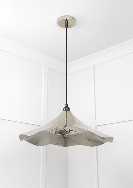 Inspired by nature, our Flora pendants feature delicate curves which disperse beams of light to create a warm, soft ambience. Pair with our matching Flora wall lights and plant pots to complete the look and elevate your space. All our pendants are made to order with a three to four week lead time. Our light fittings are dimmable when fitted with a compatible dimmable LED bulb. Bulb: LED Only – 6W Maximum (purchased separately) Supplied fully wired with matching ceiling rose and all necessary fixings. 1m of black fabric cable provided as standard. Our pendants are available in a wide range of colours and finishes. We also offer a bespoke colour service – please contact us for further information. Our Smooth Nickel lights are spun from solid brass and plated in nickel. This sleek, contemporary finish creates beautifully unexpected reflections.