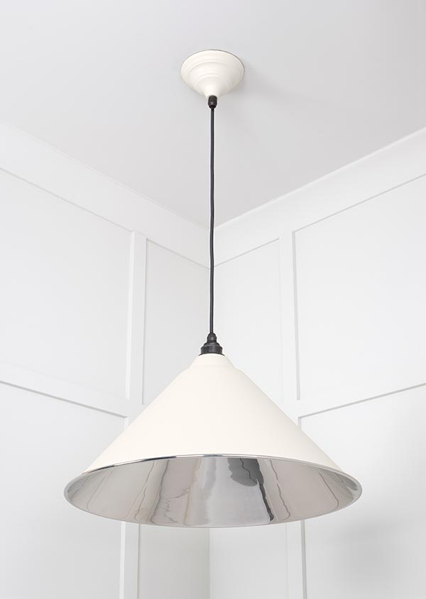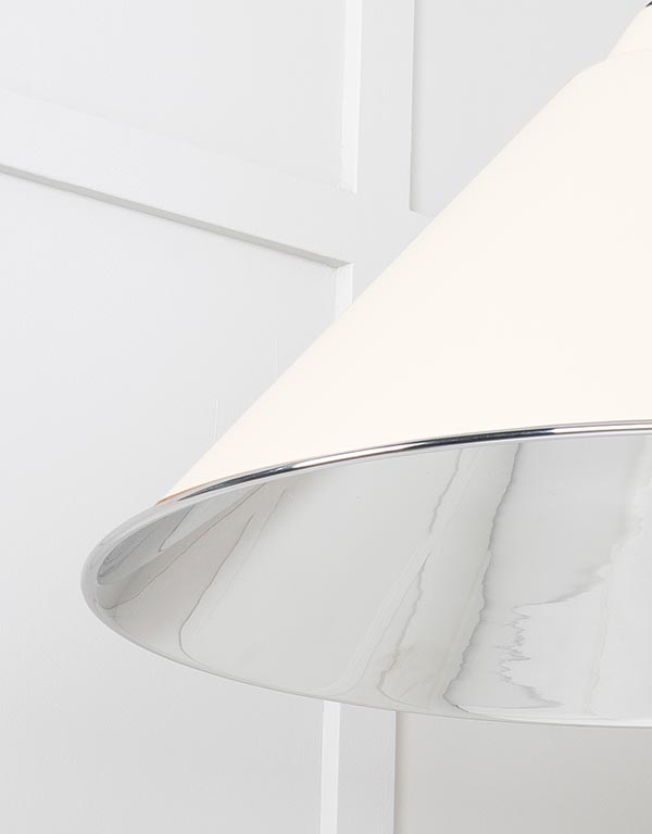 Our Hockley pendants have a sleek silhouette that brings drama to any space. They look fantastic individually, or can be combined to create further interest. All our pendants are made to order with a three to four week lead time. Our light fittings are dimmable when fitted with a compatible dimmable LED bulb. Supplied fully wired with matching ceiling rose and all necessary fixings. 1m of black fabric cable provided as standard. Bulb: LED Only – 6W Maximum (purchased separately) Our pendants are available in a wide range of colours and finishes. We also offer a bespoke colour service – please contact us for further information. Our Smooth Nickel pendants are spun from solid brass and plated in nickel. This sleek, contemporary finish creates beautifully unexpected reflections.