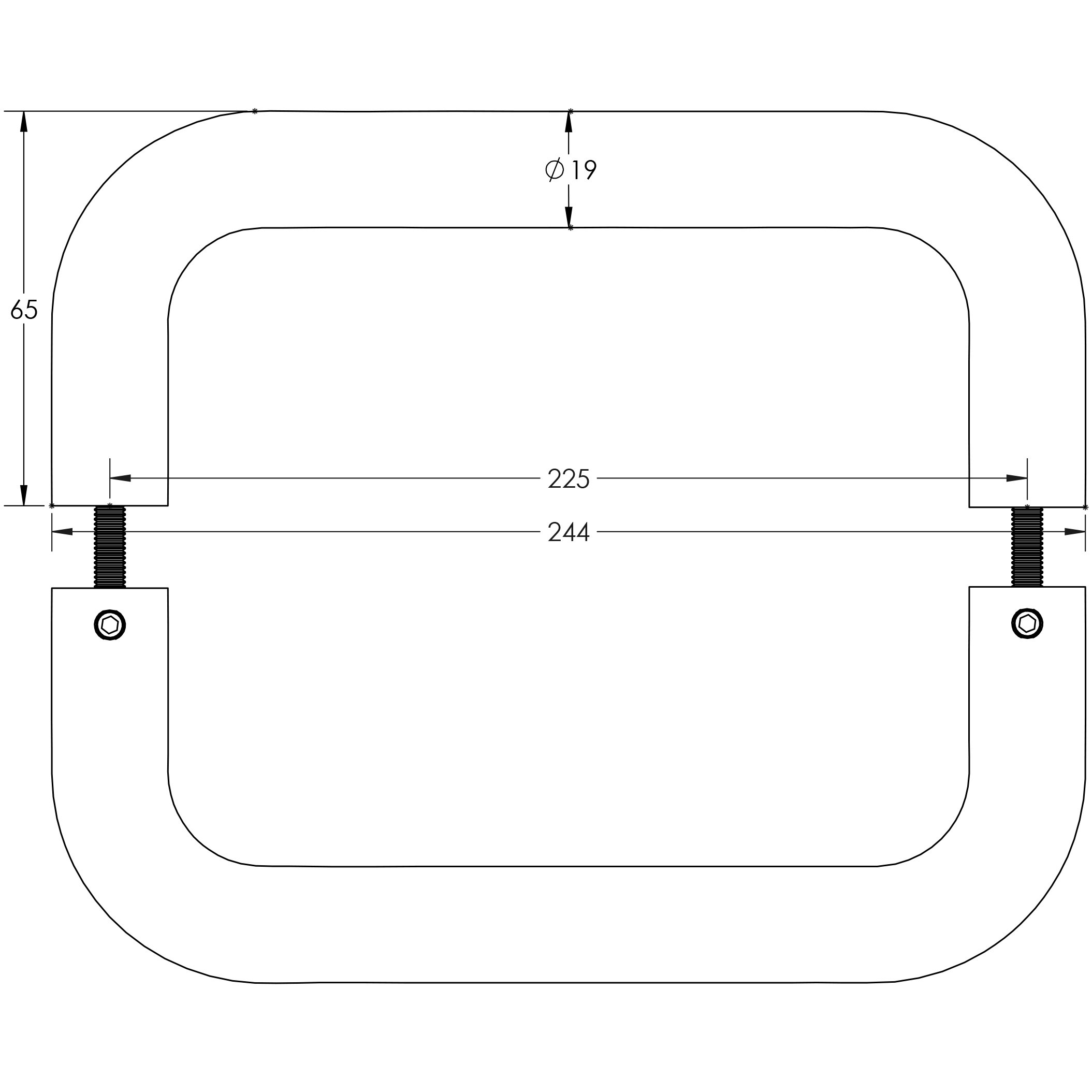 • Suitable for internal use across both residential and commercial settings Suitable Door Thickness: 35–54mm Suitable Glass Door Thickness: 8–10mm Dimensions Diameter: Ø19mm Centres: 225mm Length: 244mm Projection: 65mm Tailored quotes are available for larger commercial projects — contact our team to discuss specifications and pricing.
