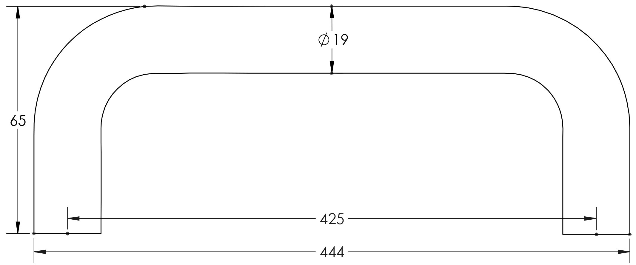 • Suitable for internal use across both residential and commercial settings Suitable Door Thickness: 35–54mm Suitable Glass Door Thickness: 8–10mm DIMENSIONS Diameter: Ø19mm Centres: 425mm Length: 444mm Projection: 65mm Tailored quotes are available for larger commercial projects — contact our team to discuss specifications and pricing.