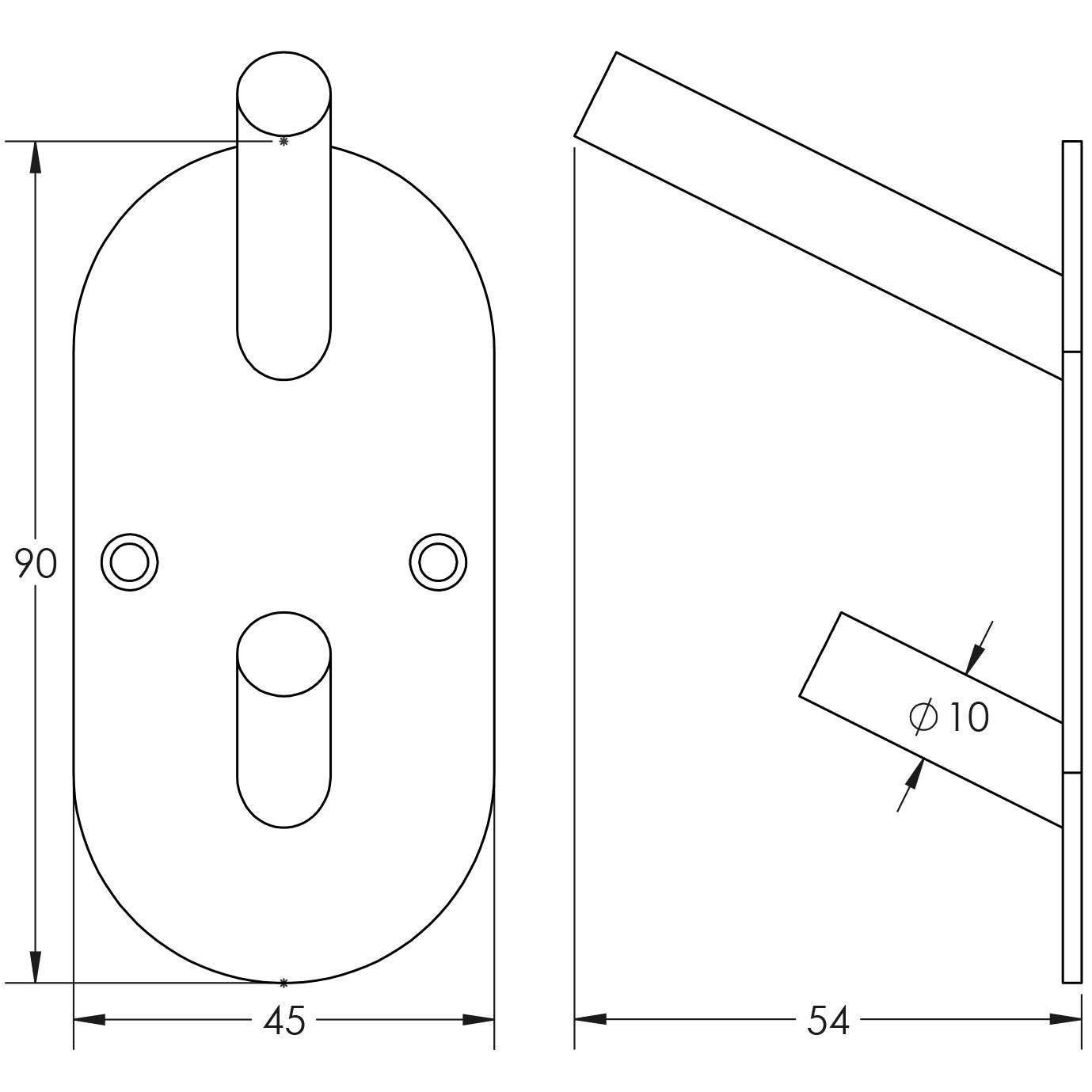• Internal, Residential / Commercial DIMENSIONS Height (H): 90mm Width (W): 45mm Projection (P): 54mm Diameter (Ø): 10mm.