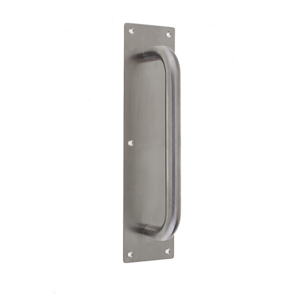 • The Frelan JSS1602 pull handle on plate offers 300mm centres with a 350mm overall plate length. Constructed from Grade 304 stainless steel with a satin finish, it features a vertical centre fixing for added strength, making it suitable for high
