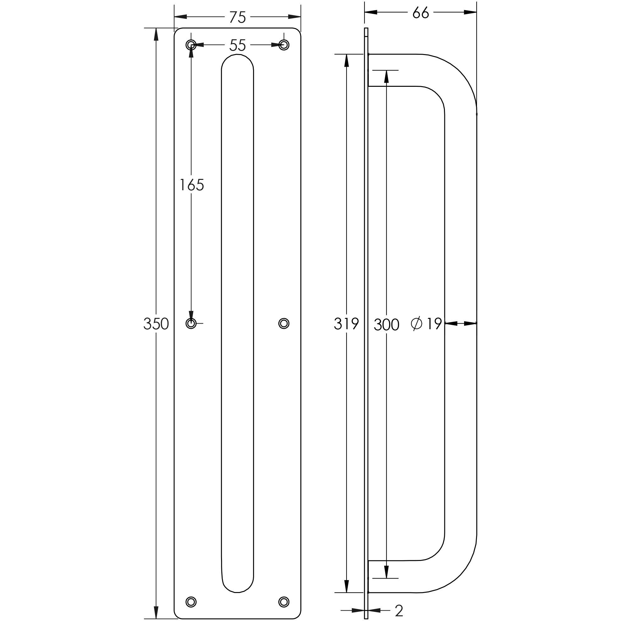 • Internal / External Suitable For: Residential / Commercial DIMENSIONS Centres: 300mm Handle Length: 319mm Vertical Centres: 165mm Overall Plate Length: 350mm Tailored quotes are available for larger commercial projects — contact our team to discuss specifications and pricing.