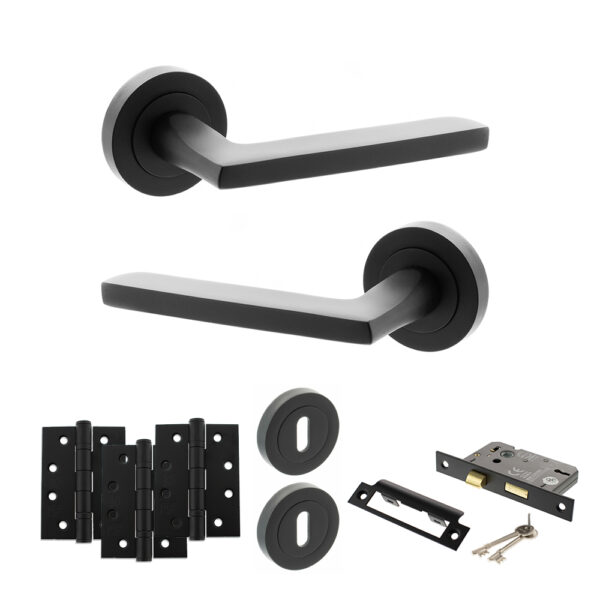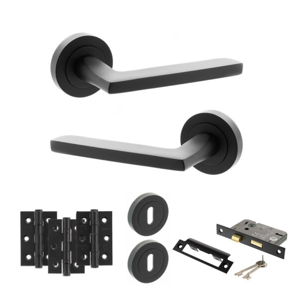 STATUS Alaska Door Handle Pack (Euro Lock Set – 2.5″ CE Sashlock, 4″ Slim Knuckle Hinges x2) – Matt Black