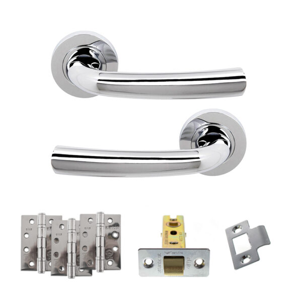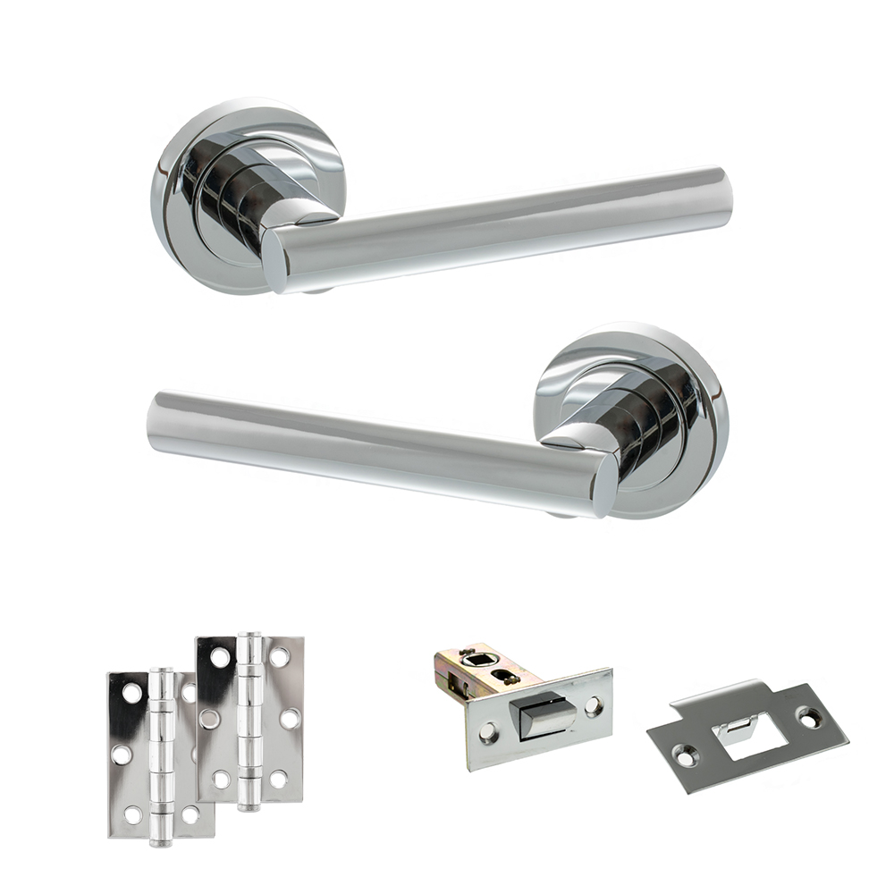 Upgrade your interior doors with the Polished Chrome Latch Pack. This essential door hardware kit combines a smooth tubular latch with premium lever handles and hinges for a consistent, modern look throughout your home.