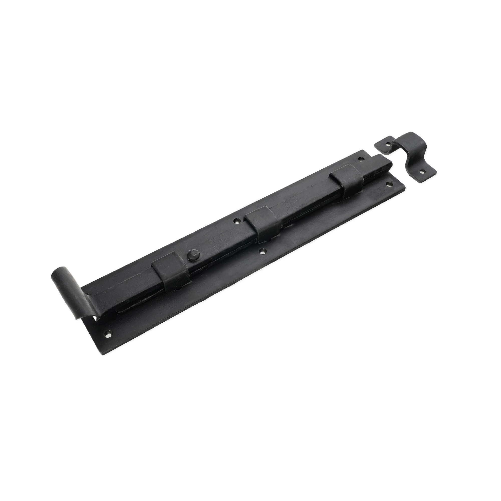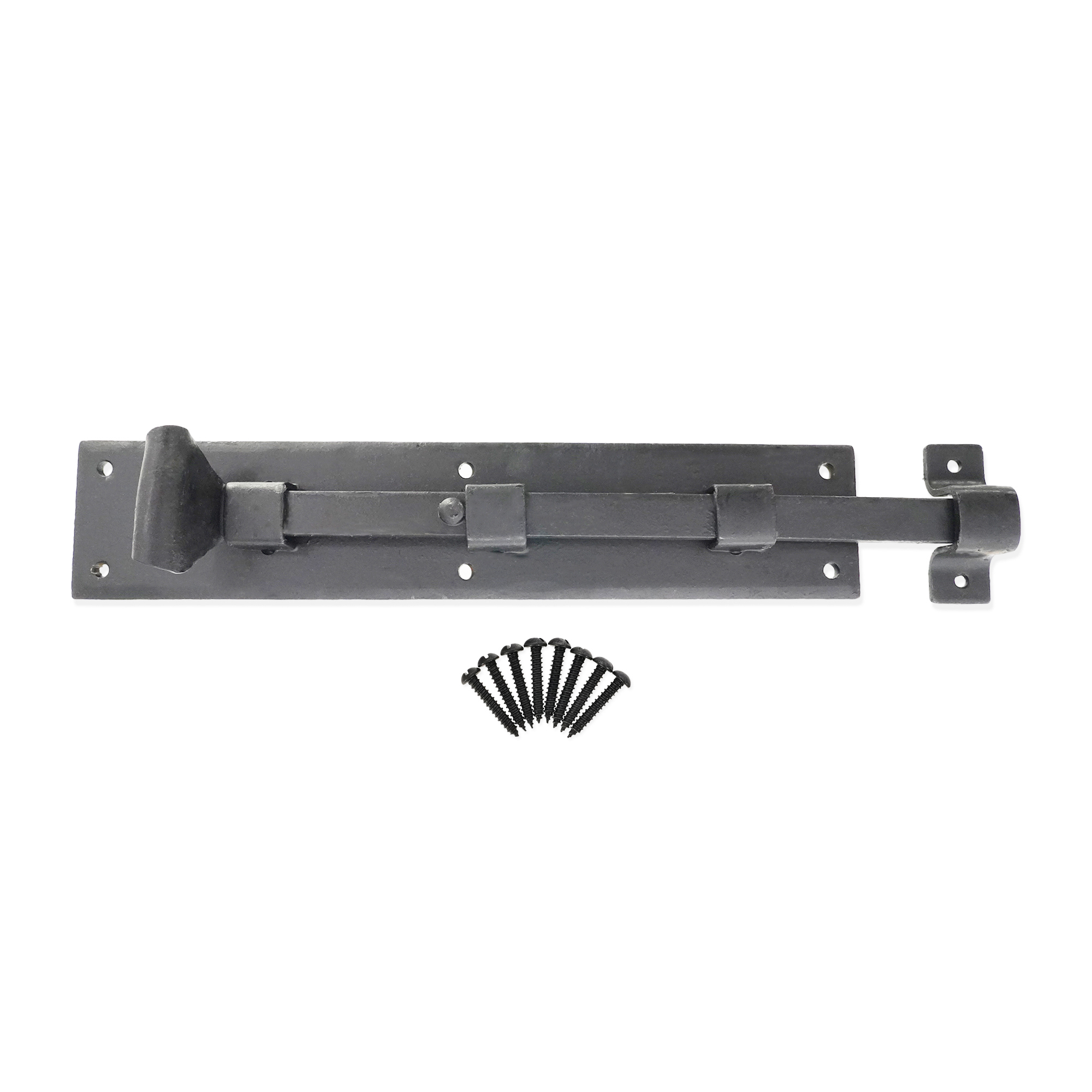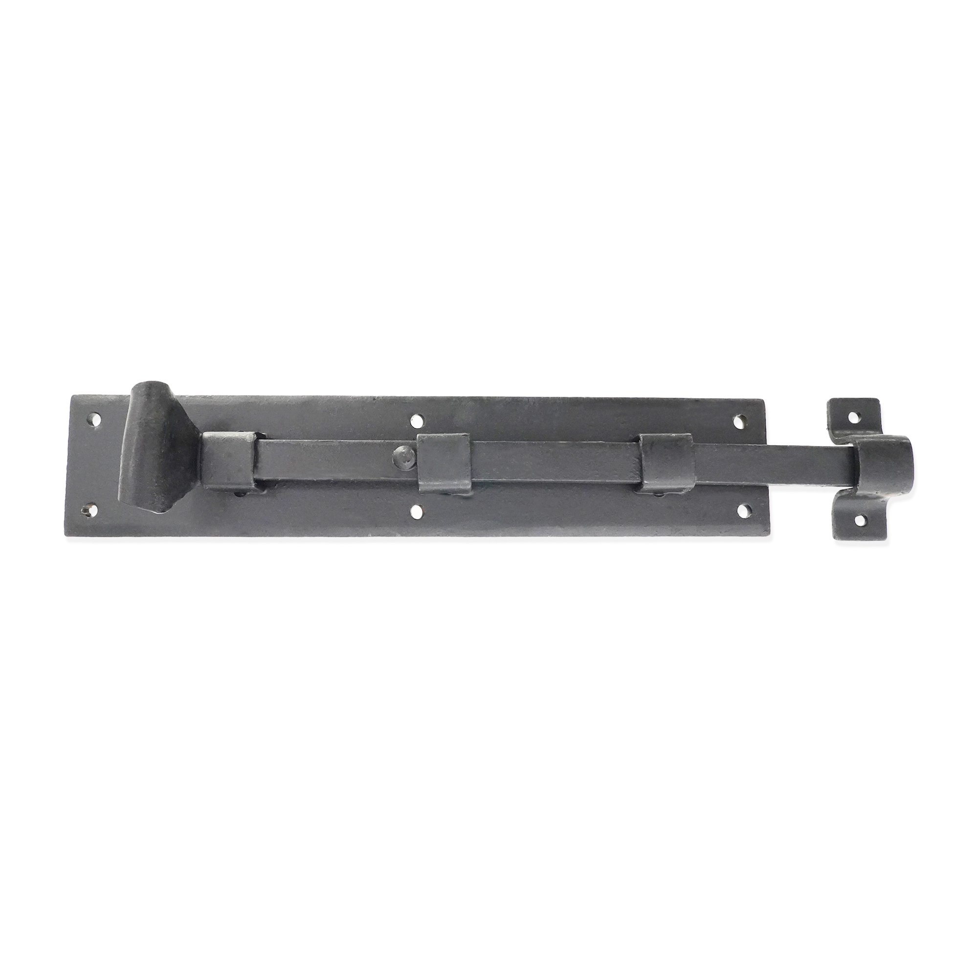 The ‘Straight Flush Bolt’ decorative hand forged fishtail end is traditionally made and forge-blackened with a beeswax finish. A multi-purpose bolt which can be used horizontally & vertically due to the strong spring mechanism incorporated into the bolts on windows or inward opening doors.