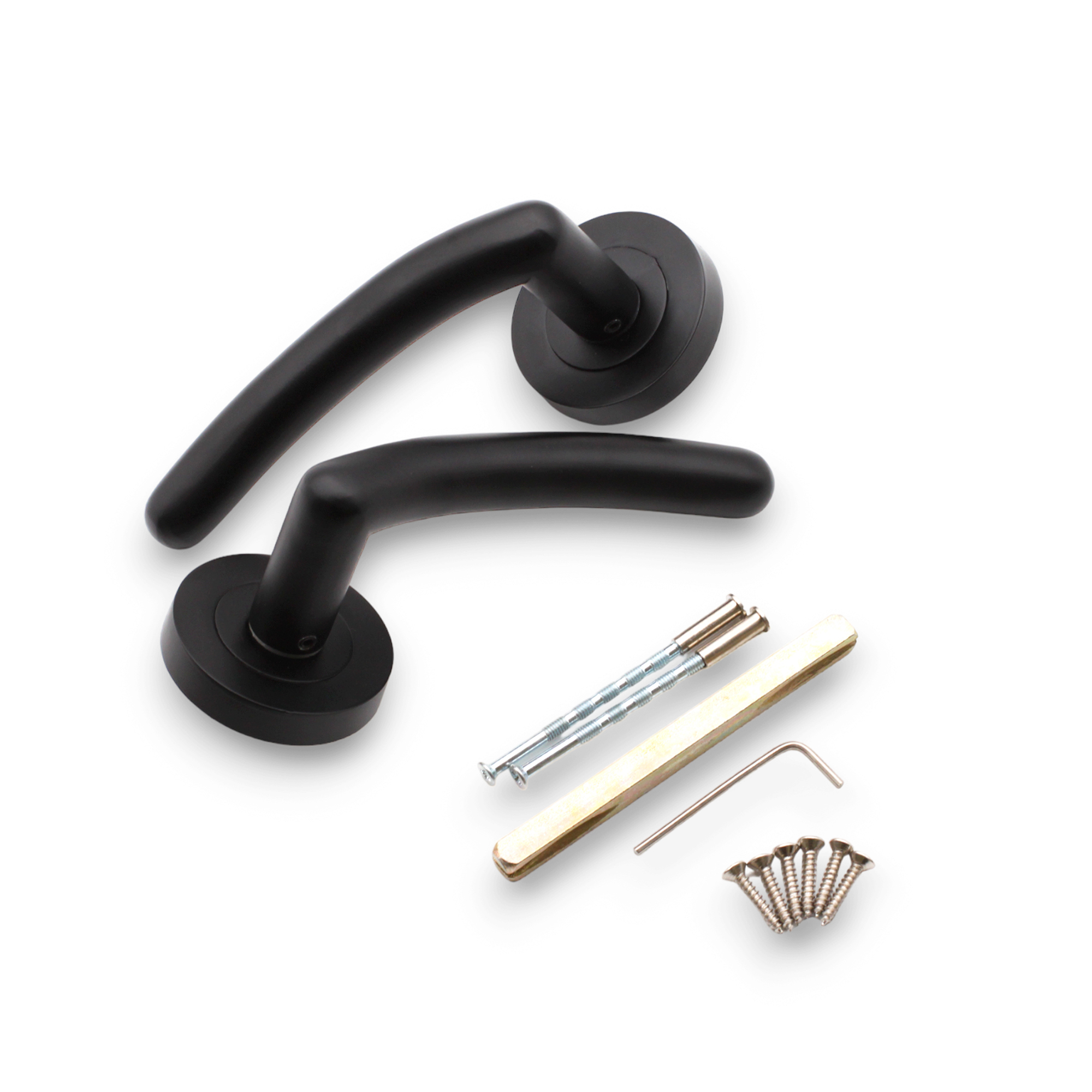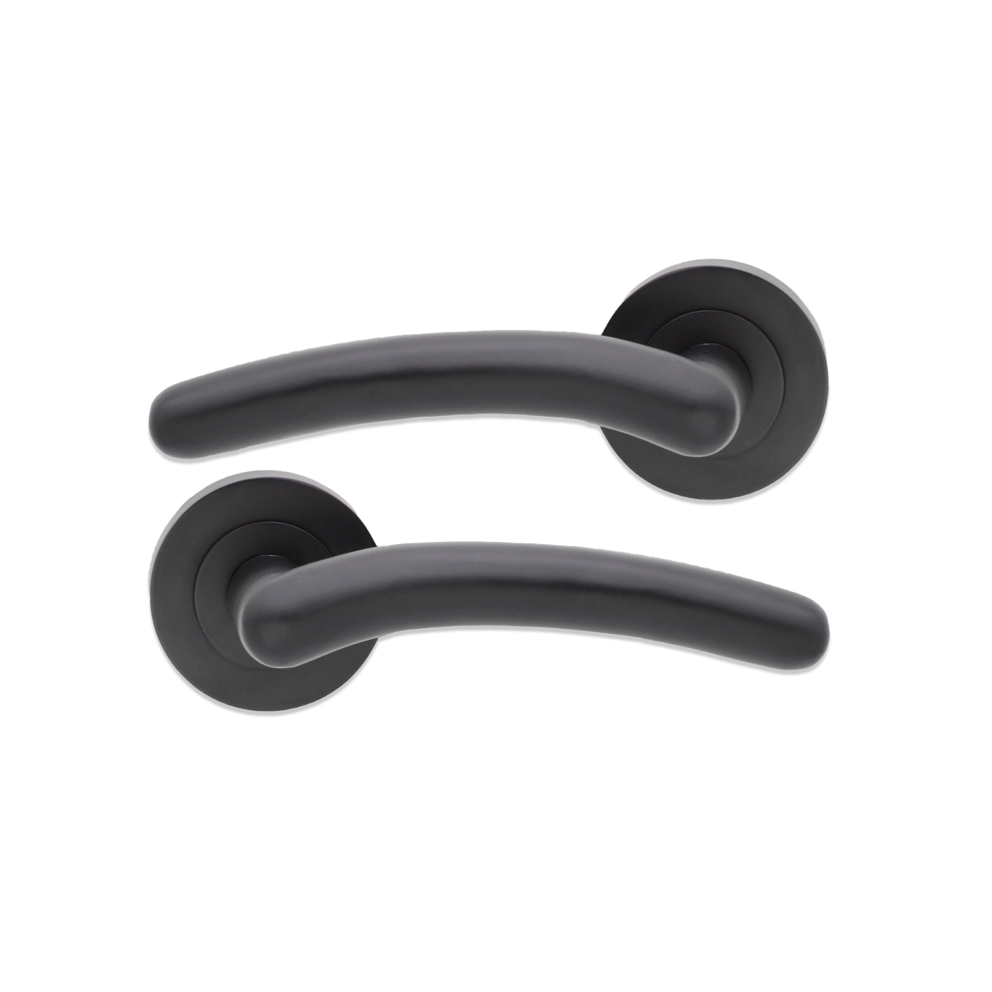 Our contemporary in style ‘Taurus’ internal door handles, pair on a sprung rose, feature a smooth touch finish that feels comfortable and tactile with a curved bar handle lever design. This can be used on their own, for regular passage doors, or can be combined with locking or bathroom escutcheons if security/privacy is required.