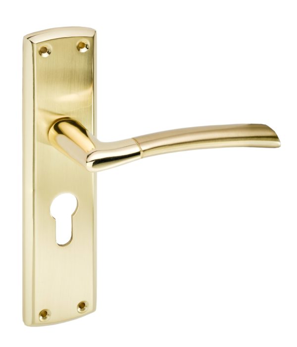 Tifosi Design Lever On Plate Polished Brass/Satin Brass – Euro Profile | Door Handle Set – Modern Design, (63152)