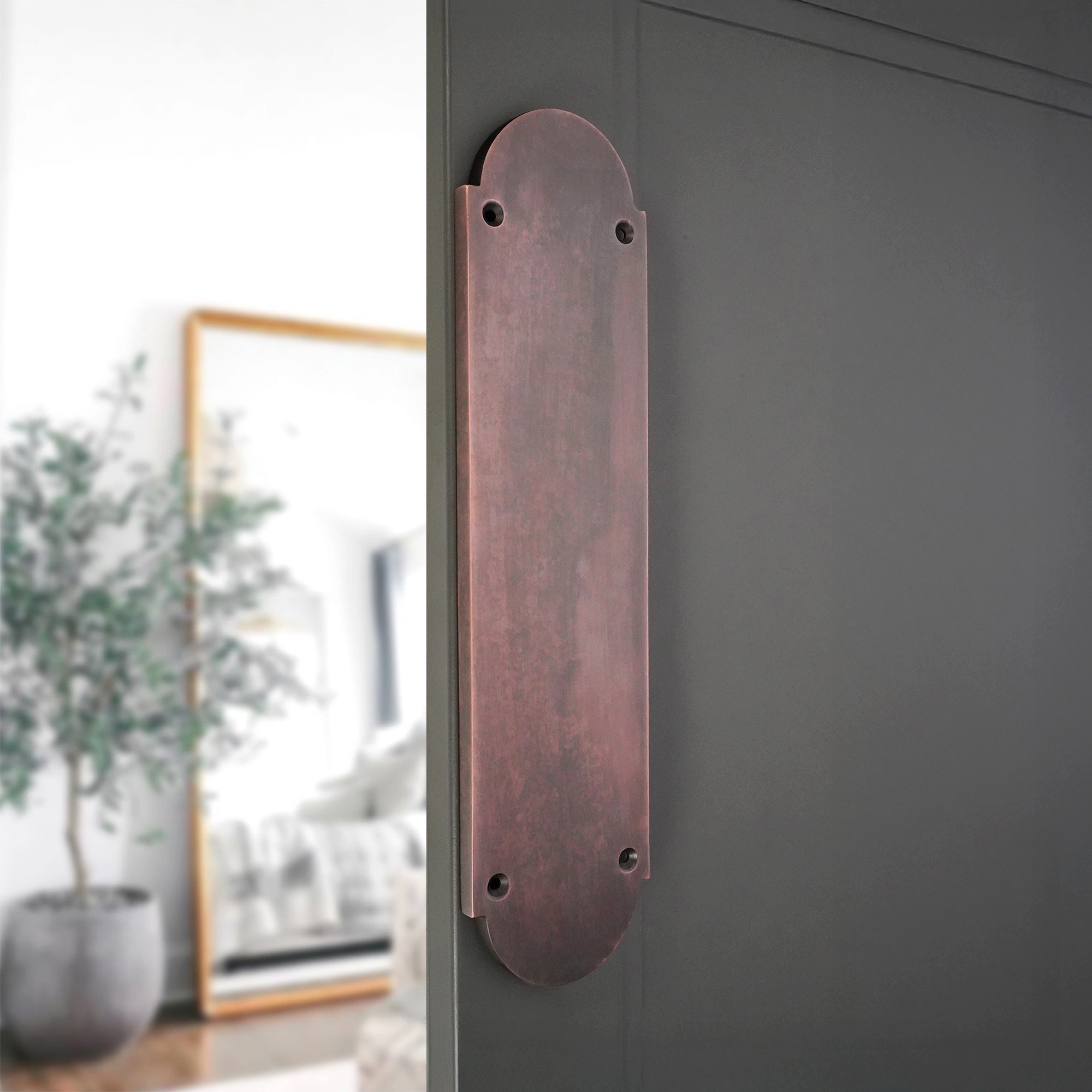Our old style ‘Victorian Half-Round’ finger push plate made with solid forged brass material with a curved shaped head made from solid brass material with a contemporary smooth finish will enhance any solid wood exterior doors with their stylish and solid look.