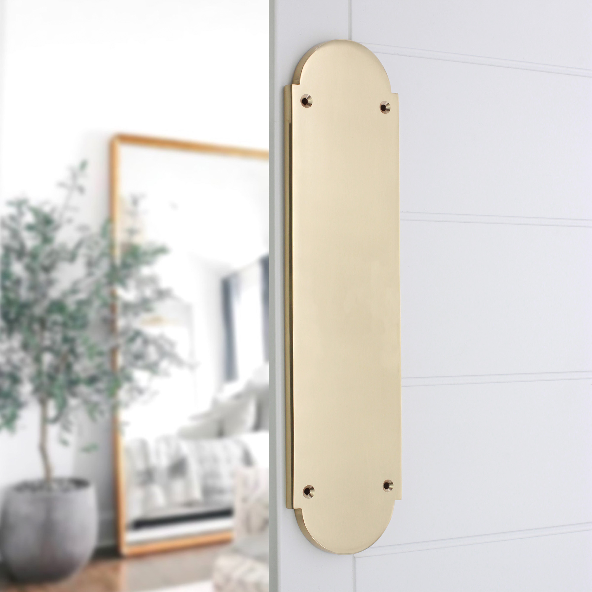 Our old style ‘Victorian Half-Round’ finger push plate made with solid forged brass material with a curved shaped head made from solid brass material with a contemporary smooth finish will enhance any solid wood exterior doors with their stylish and solid look.