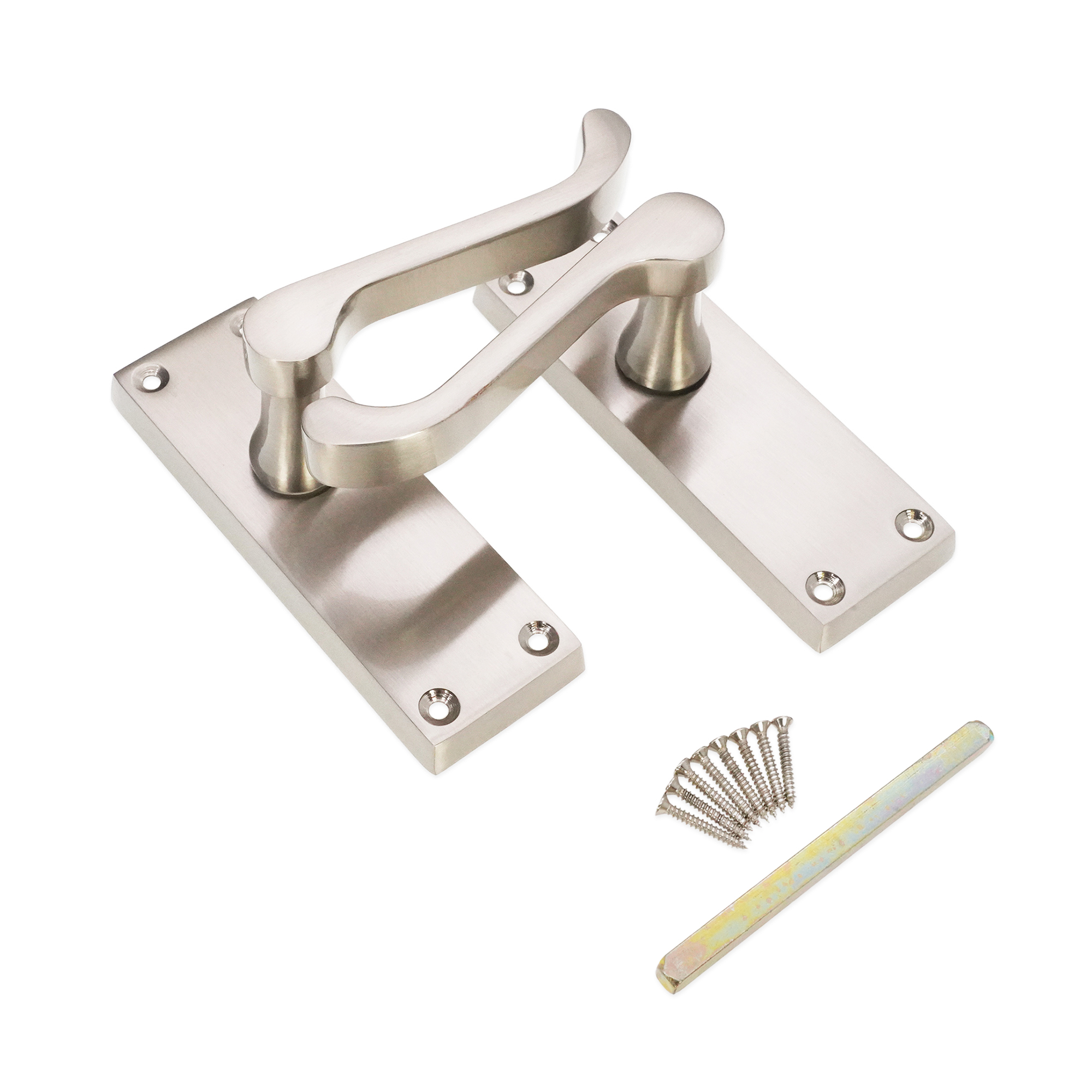Our traditional style, scroll lever door handles on latch integrated on a rectangular backplate, encompassing modern design with a comfortable Victorian scroll shaped lever for interior doors.
