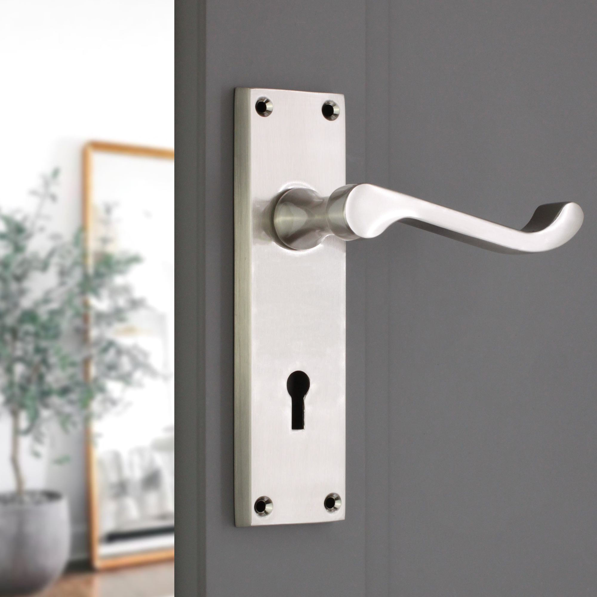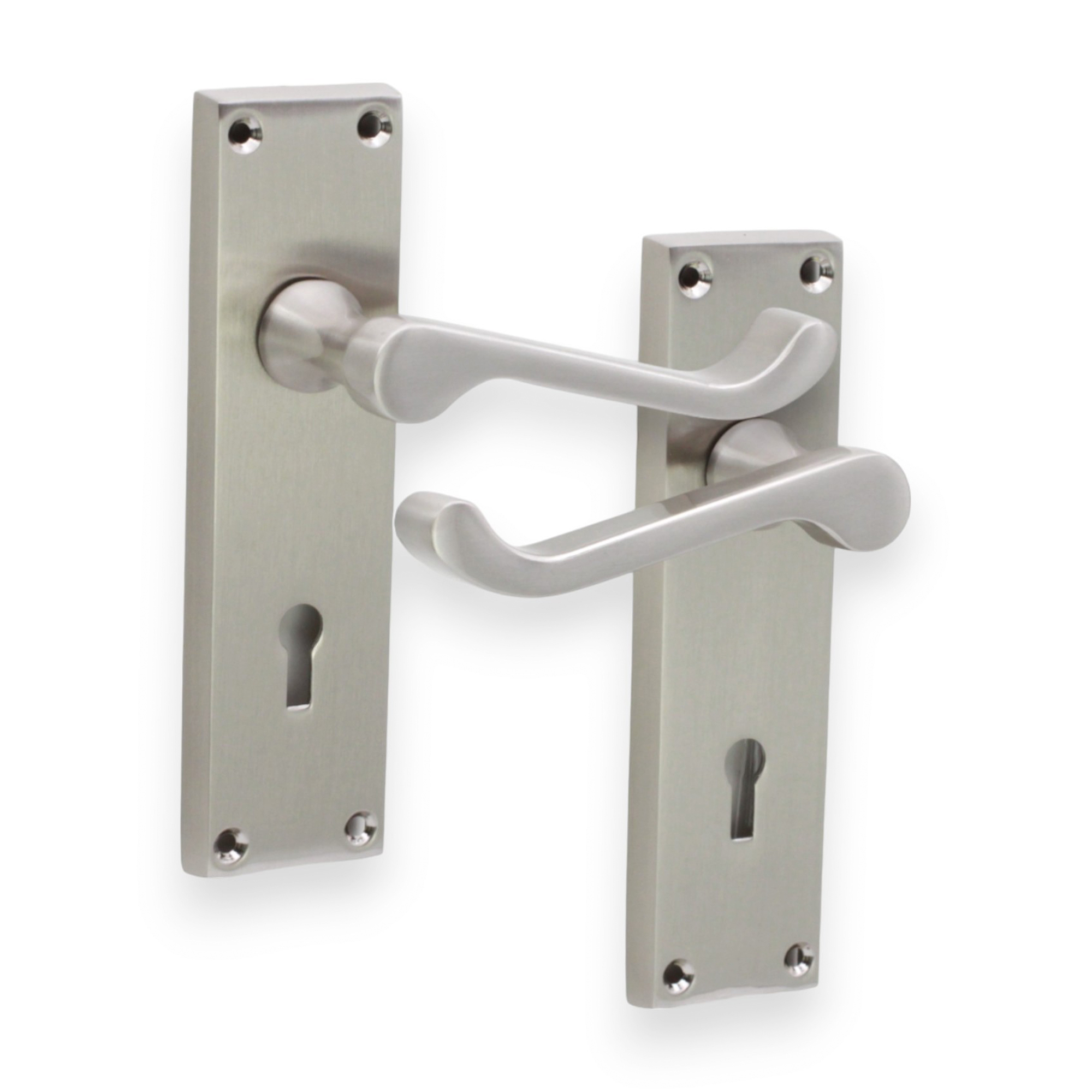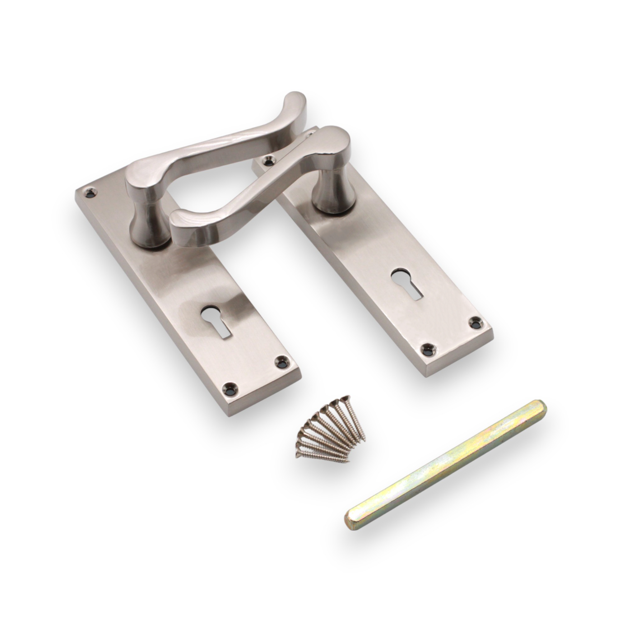 Our traditional and modern styles, internal backplate door handles with standard keyhole profile offer a timeless design, featuring a comfortable square head Victorian scroll shaped lever for interior doors where you have decided to use lock type handles on backplate.