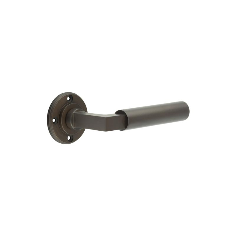 The Westminster lever door handle on rose is a beautifully crafted handle made from solid brass. It features a unique blended square and cylindrical handle design set upon a circular rose, adding a touch of sophistication to any door. This handle is available in five high